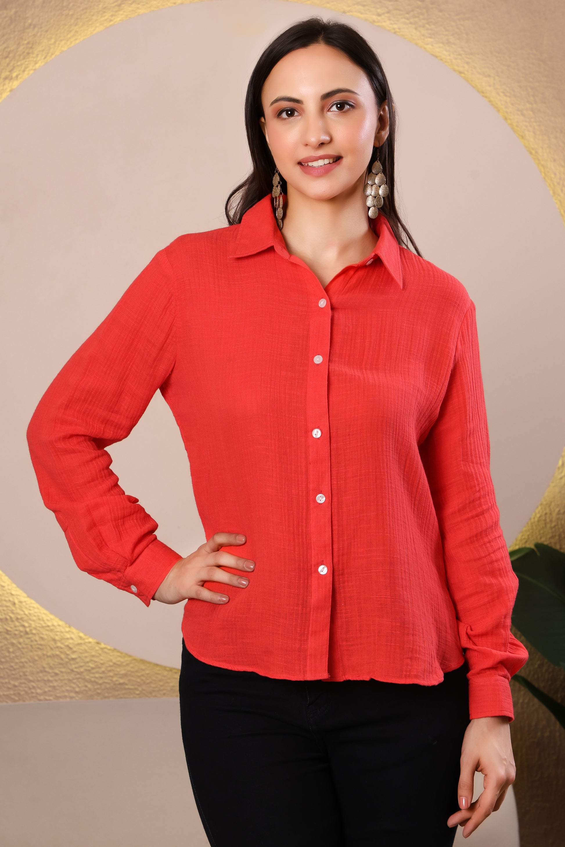 Add a pop of bold elegance to your wardrobe with this Red Casual Shirt. Designed with a relaxed fit, full sleeves, and a classic collar, it offers both comfort and style. The vibrant red hue makes it a standout piece that can be styled for both casual and semi-formal looks. Crafted from soft, breathable fabric, it’s perfect for all-day wear.